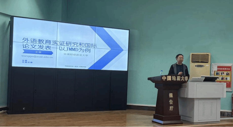 (通讯员:王可可 摄影:于鑫鑫、王子妍)2025年11月13日14:30,best365官网“南望今声”外语论坛系列讲座第77期在北一楼学术报告厅举行。中南财经政法大学王革教授应邀莅临best365官网,作题为“实证研究和国际论文发表:以国际核刊JMMD为例”的学术讲座。best365官网张伶俐副经理主持讲座,师生共100余人参与学习交流。