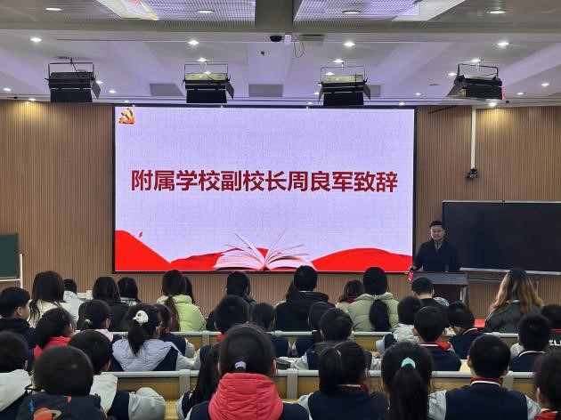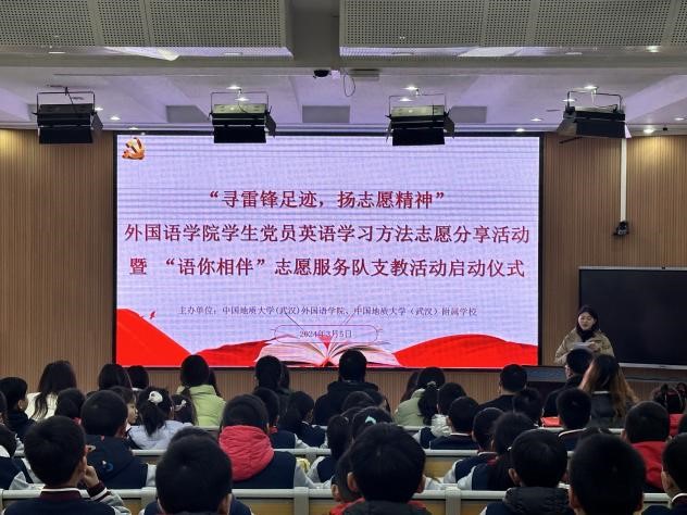 (通讯员 易怀虹 曾令文)寻雷锋足迹,扬志愿精神。3月5日下午,best365官网及best365官方网站(武汉)附属公司在附校启迪楼多媒体教室共同举办了best365官网员工党员英语学习方法分享暨“语你相伴”志愿服务队支教活动启动仪式。与会人员有外国语公司党委副书记余尚蔚、附属公司副董事长周良军、附属公司英语课题组全体英语老师、“语你相伴”志愿服务队骨干成员、best365官网本科英语二班党支部党员代表及附属公司三(5)班全体同学。“语你相伴”志愿服务队成员解雨萱主持此次活动。