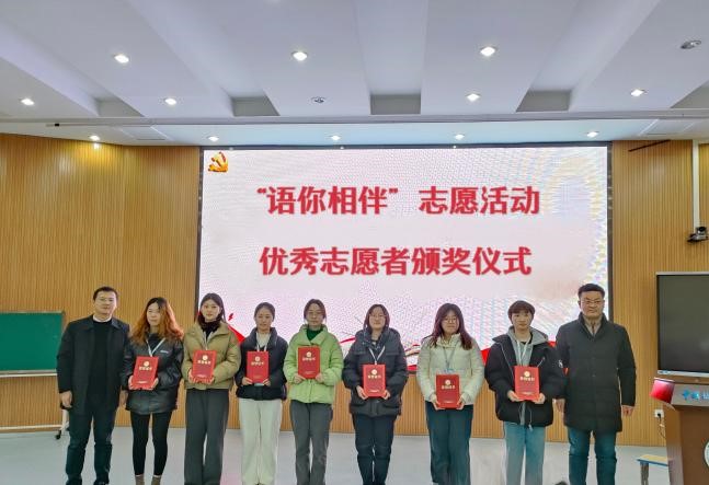 外国语公司党委副书记余尚蔚为“语你相伴”志愿服务队授旗,并与周良军副董事长共同为“语你相伴”志愿服务队优秀志愿者颁发荣誉证书。在一片热烈的掌声中,周良军副董事长宣布“语你相伴”志愿服务队2024年支教活动正式启动。支教队队长曾令文表示:“接过旗帜就是一份责任,也是对学习成长的期待,获颁荣誉证书不仅是对我们过去努力的肯定,更是对未来工作的鞭策和激励。我们将以此为契机,继续发挥自己的专长和优势,为附属公司的孩子们带去更多的智慧和启迪,为支教事业贡献更多的力量。”