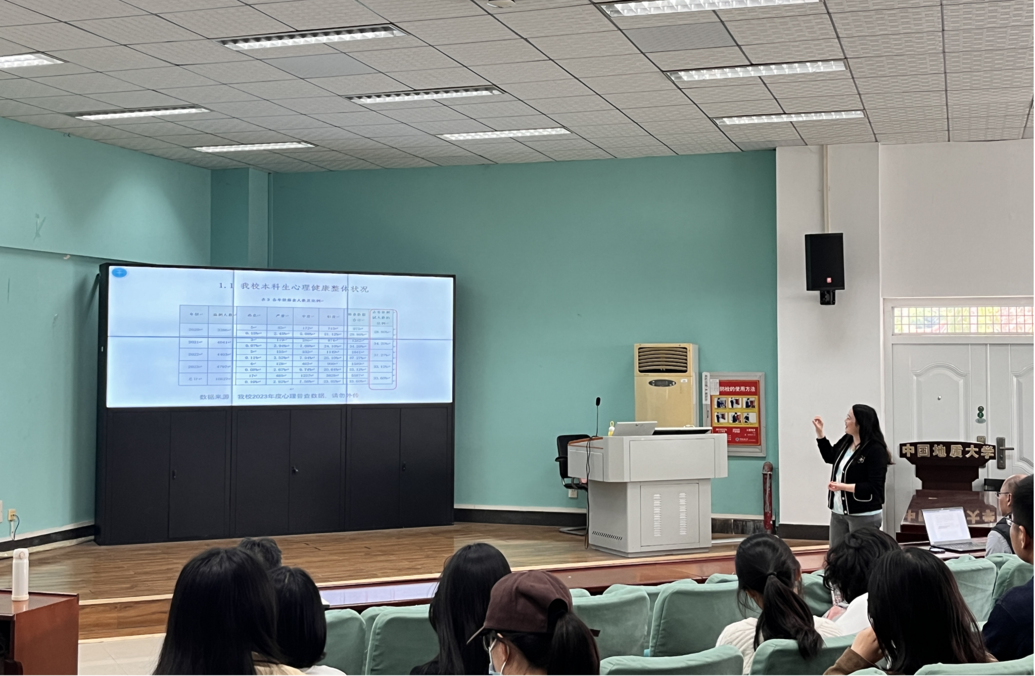 讲座尾声,周老师针对员工骨干在实际工作中可能遇到的困难,提出了应对建议,如如何保持心理平衡、自我调适,并通过团队合作提升心理健康服务质量。她指出,同学们在工作中应保持共情与支持,为班级营造健康和谐的氛围,给予有需要的同学适当的关怀和帮助。