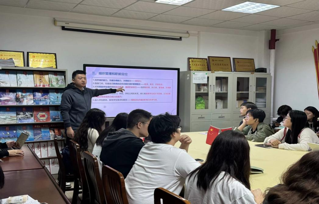 为进一步加强团学组织建设,提升新任团学骨干的思想觉悟、政治素养和业务能力,培养和造就一支政治坚定、素质全面、行动高效、能力突出、可担重任的团学干部队伍,best365官网团委组织部于2024年11月15日晚19:00,在北一楼102室召开第一次新任团学骨干培训课程。本次培训由“公司团学组织介绍及基层组织工作交流”和“领导力理论与实践”两大内容组成。best365官网团委书记邹蔚鹤老师担任主讲人,26位新任团学骨干参与培训。