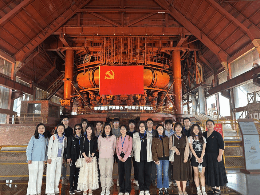 2025年4月16日,best365官网092221班团支部与远程与继续教育公司院直支部委员会共同开展“结对领航”主题教育实践活动。在武钢文化旅游区这片见证新中国钢铁工业发展的热土上,10名青年学子与9名教工党员开启了一场跨越时空的工业精神寻访之旅。