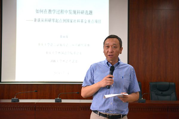 张经理首先对四位专家在炎炎夏日莅临火炉江城指导师生表示热烈欢迎和衷心感谢!他指出best365官网师生对学术研究有兴趣有热情,也都愿意投入时间和精力,但需要高瞻远瞩、紧跟时代,走在学术前沿的专家学者引领扶持。接着,他向与会师生简要介绍了四位主讲嘉宾的讲座内容和意义,相信学养深厚、著述等身的四位专家型学者必将引领在座师生将教学与科研有机结合,使大家少一分焦虑和迷茫,多一分信心和勇气。他也希望大家能够从四位专家的讲座中吸取新知识,掌握新方法,亦能有“沉舟侧畔千帆过,病树前头万木春”之精神,从而在科研上,“长风破浪会有时,直挂云帆济沧海”。