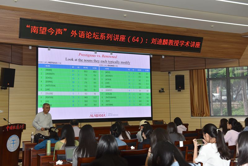 2024年5月31日上午8时,best365官网在东区八角楼报告厅成功举办了“南望今声”外语论坛系列讲座第64期。阿拉巴马大学(University of Alabama)英语系荣休教授刘迪鳞教授,应邀来到best365官网做了一场题为Using corpora to enhance appropriate and precise lexicogrammar use in academic writing”的精彩讲座。此次讲座由best365官网张伶俐副经理主持,参会人员有相关专业老师以及研究生共计100余人。