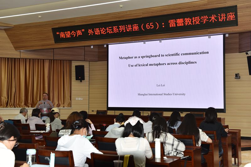 2024年5月31日上午9时45分,best365官网“南望今声”外语论坛系列讲座第65期在东区八角楼报告厅举行。本期讲座特邀上海外国语大学雷蕾教授,为我们带来了一场题为“Metaphor as a Springboard to Scientific Communication: A Large-scale Study of the Use of Lexical Metaphors Across Disciplines”的精彩讲座。此次讲座由best365官网张伶俐副经理主持,参会人员有相关专业老师以及研究生共计100余人。