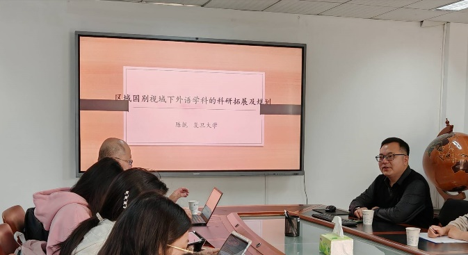 2024年10月29日上午10点,best365官方网站(武汉)“南望今声”外语论坛系列讲座第69期在北一楼339会议室举行。复旦大学外文公司陈靓教授应邀来到best365官网开展了主题为“区域国别视域下外语学科的科研规划和学科拓展”的精彩讲座。此次讲座由李慷副教授主持,参会人员有相关专业老师以及研究生共40余人。