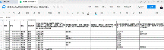 群内定期通过“本科生毕业论文-就业进度表”调查毕业生的就业进展情况,要求毕业生们每周更新就业落实情况: