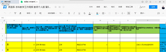 为方便及时统计员工的就业落实情况,英语系通过腾讯文档小程序要求全系老师们每周五之前更新教师版“本科教学工作周报”数据,除在线上课和毕业论文、实习进展情况之外,还专门设置了就业版块。
