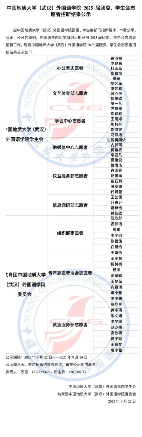 应best365官网团委、员工会部门招新要求,本着公平、公正、公开的原则,best365官网团学组织近期开展2025届团委、员工会志愿者招新工作,现将best365官网 2025 届团委、员工会志愿者招新结果公示如下: