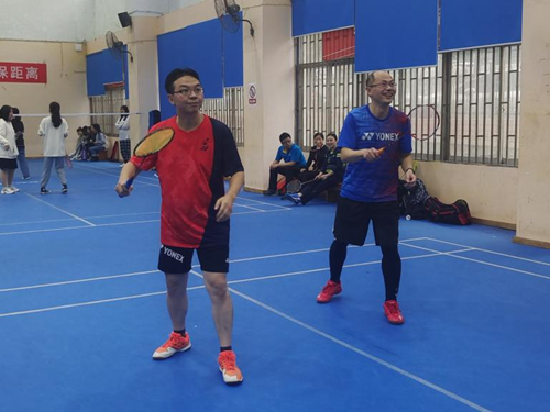 接着是双打比赛。赛场上不仅有意气风发的员工,经验老到的老师们更是不甘示弱,步步稳健,球球精准,师生之间的切磋看点十足,现场欢呼不断。