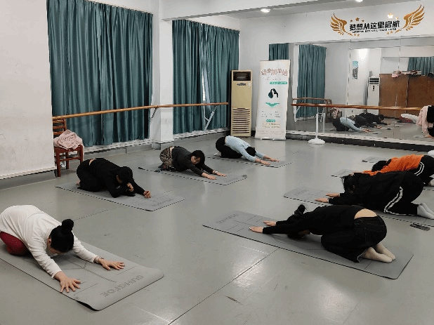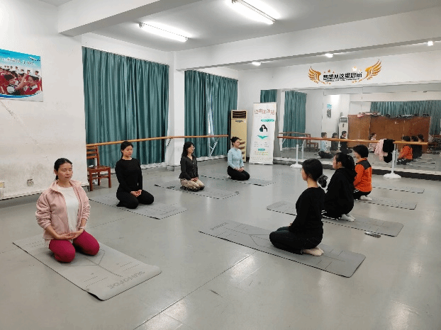 进入脊椎拉伸环节,老师深知同学们平日长时间伏案学习办公,脊椎容易出现酸痛不适的情况,便贴心地为大家详细讲解了背部、肩部、颈部等身体部位的拉伸动作,并亲自指导大家完成。同学们按照老师的指导专注于拉伸之中,感受肌肉慢慢得到放松,沉浸于身心舒缓的时刻。
