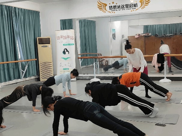 在瑜伽体式部分,老师依次教授了猫式伸展、下犬式、蛇式、摩天式、八体投地等经典瑜伽动作。从动作的起始姿势、发力要点到呼吸的配合,老师都一一细致讲解、耐心示范,并适当给予辅助,确保动作规范准确。