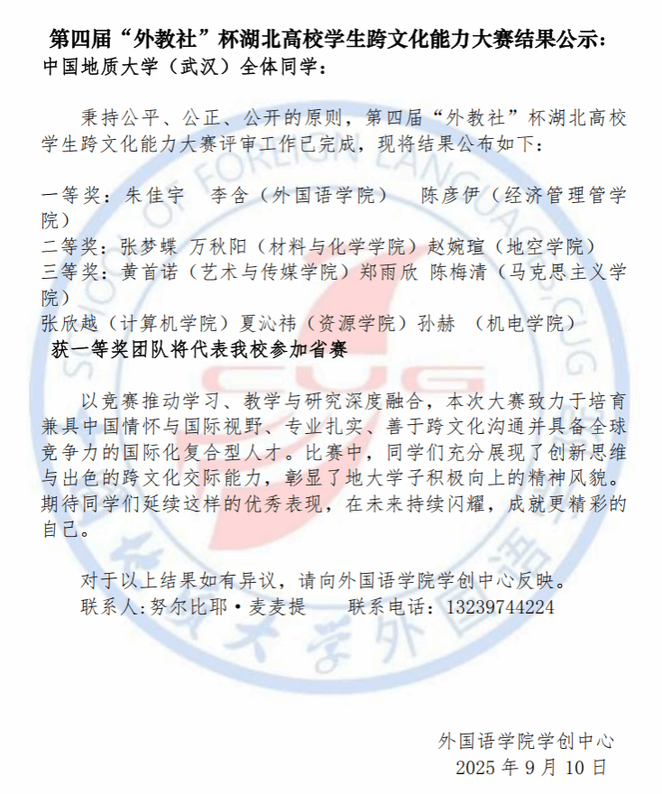 第四届“外教社”杯湖北高校员工跨文化能力大赛结果公示