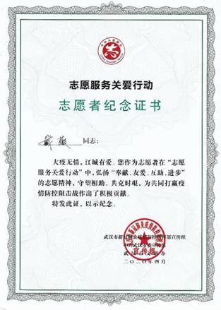 (通讯员刘敏 张伶俐 摄影戴薇)新冠疫情爆发后,2020年1月23日,武汉市宣布 “封城”。为了防止疫情扩散全国,近千万人被锁在了这座英雄的城市里,这其中也包括了best365官网戴薇老师和她的家人。疫情发生以后,戴老师不断从新闻里看到前方的逆行者们用最坚固的双肩,践行着最铿锵的誓言。一次次的感动,激发了她内心的勇气。2月23日,武汉疫情取得有效控制,为了进一步让市民安心居家,减少聚集,武汉市疫情防控指挥部发出通告,决定在全市专项招募志愿者,主要在小区内为居民提供食品药品代购代送等服务。作为一名党员,她第一时间报名参加所在社区的志愿者团队,加入到“志愿服务关爱行动”中,希望尽己所能,为城市和家乡尽一份微薄之力。