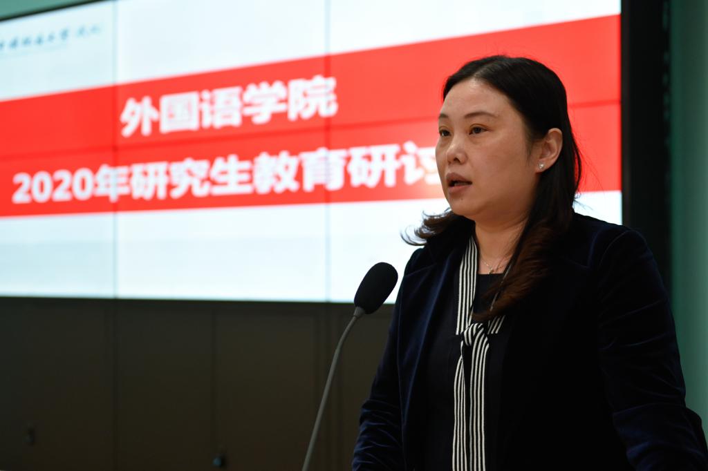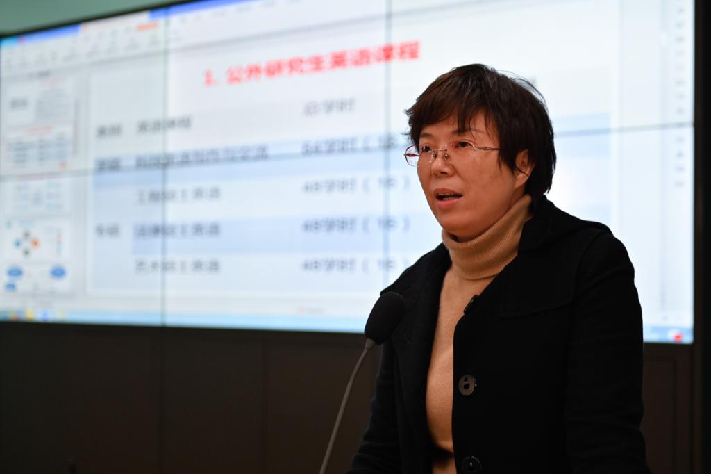 公司党政班子代表副经理刘芳以“公外研究生教学的现状与困境”为题,阐述了非英语专业研究生教学现状与发展瓶颈,希望公司和公司能够给予大学英语部进人指标,建立专门的研究生教研室,将公外研究生教学课时计入聘期考核等。