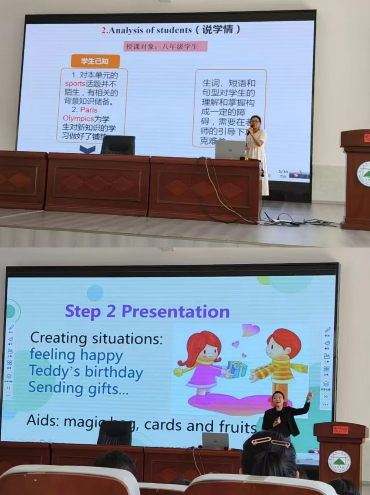 8月15日下午的结业典礼上,两位教师代表呈现了精彩的说课展示,他们将培训所学融入说课教案,展现了此次培训内容在实际教学中的有效落地。