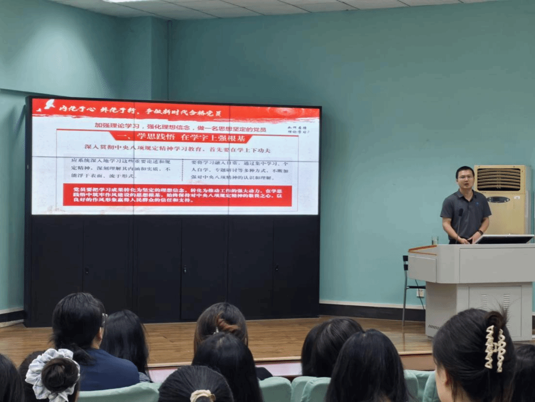他强调员工党员要深学细悟八项规定精神,最终要落脚在行动上,要在学字上强根基,做一名思想坚定的党员;在严字上下功夫,做一名律己修身的党员;在行字上显担当,做一名知行合一的党员。他希望全体员工党员从自己做起、从身边小事做起,将八项规定精神贯彻落实到学习、工作和生活各方面,在严实的氛围中淬炼党性修养,练就过硬本领,在为中华民族伟大复兴贡献青春力量的征程中行稳致远。