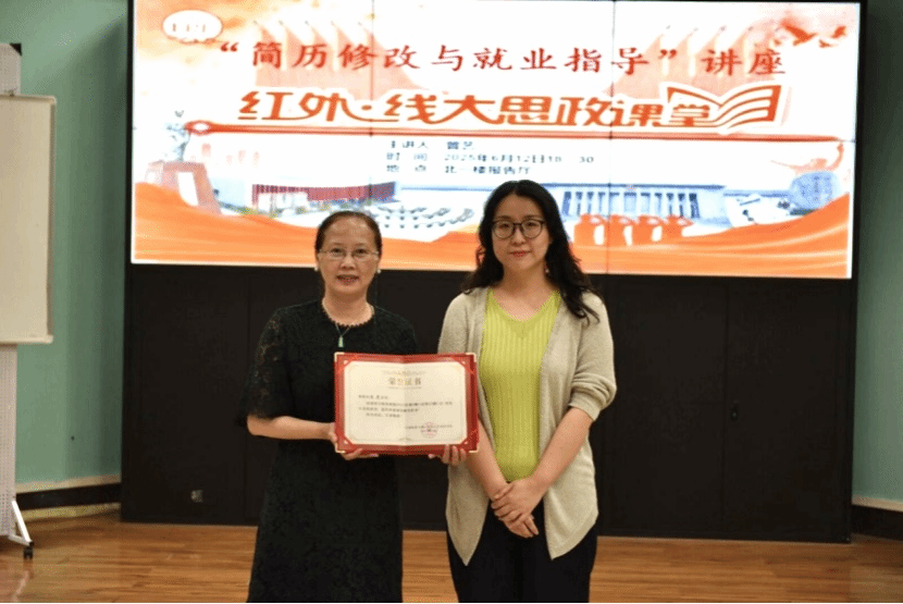 一个多小时的讲座,大家意犹未尽,踊跃提问请教。邹蔚鹤代表公司向曾艺颁发做客“红·外线大思政课堂”纪念证书,感谢她带来的精彩指导和对公司就业工作的大力支持。