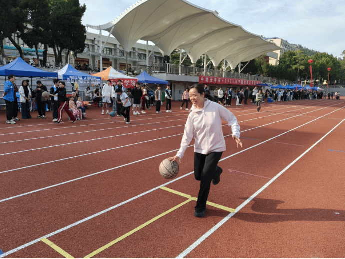 赛场上,师生健儿同场竞技,奋力拼搏;赛场内外,员工志愿者们穿梭忙碌,细致服务;师生间默契的协同配合、赛场边热情加油助威,构成了另一道温暖而亮丽的风景线。