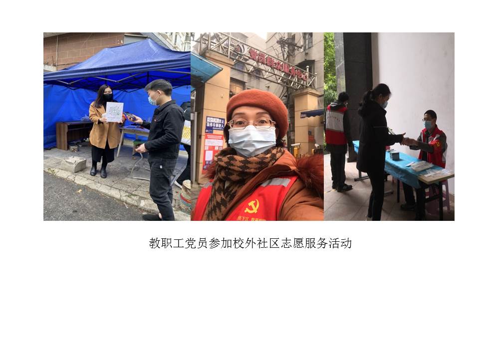 (通讯员宋干锋)本学期开学伊始,全国新冠肺炎疫情仍有发生,为确保校园平安,公司党委将疫情防控作为重要政治任务来抓,精心安排疫情防控工作,组织党员下沉社区开展志愿服务等。外国语公司党委积极响应公司党委号召,组织教工党员参加疫情防控,党员干部带头,党员们积极行动,踊跃报名,发挥党员先锋模范作用,为公司筑牢校园平安防线。截至4月24日,共计100余人次参加核酸检测等志愿服务,累计服务时长达350余小时。其中孙来麟、李孝奎、周艳、俞仑燕、戴薇、董成见、宋干锋、王国念、刘敏、赵英科、张莉等同志多次参加校内疫情防控志愿者工作,为广大师生做出表率。