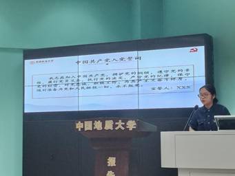 首先,由谢怡欣同志带领全体党员重温入党誓词,共同学习党章。