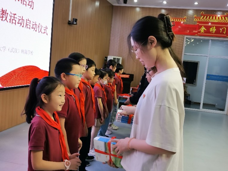 (通讯员 赵润东 郭文静)“看到小朋友们拿到书籍后的满足,我感受到了开展志愿服务的价值和意义——呵护小朋友们的每一份童真,用书籍传递智慧,助力未来一代青年才俊的成长,为未来国家发展、民族复兴的中流砥柱积蓄力量。”best365官网本科生英语3班党支部的张佳宁在捐书活动中不由得感慨道。为加强公司与公司附属公司的交流合作,进一步推进语你相伴志愿服务活动,公司于2023526日下午在附属公司启迪楼四层阶梯教室举办了书香筑梦 语你相伴员工党员附校赠书活动暨语你相伴志愿服务队支教活动启动仪式,附属公司董事长黎义波、副董事长周良军、小学英语教研组组长赵纯、三(5)班班主任谢素娥和全班同学、公司党委副书记胡文勤、研究生德育助理郭文静、语你相伴志愿服务队队员代表、本科生英语3班党支部党员代表参加了本次活动。活动由公司研究生德育助理郭文静主持